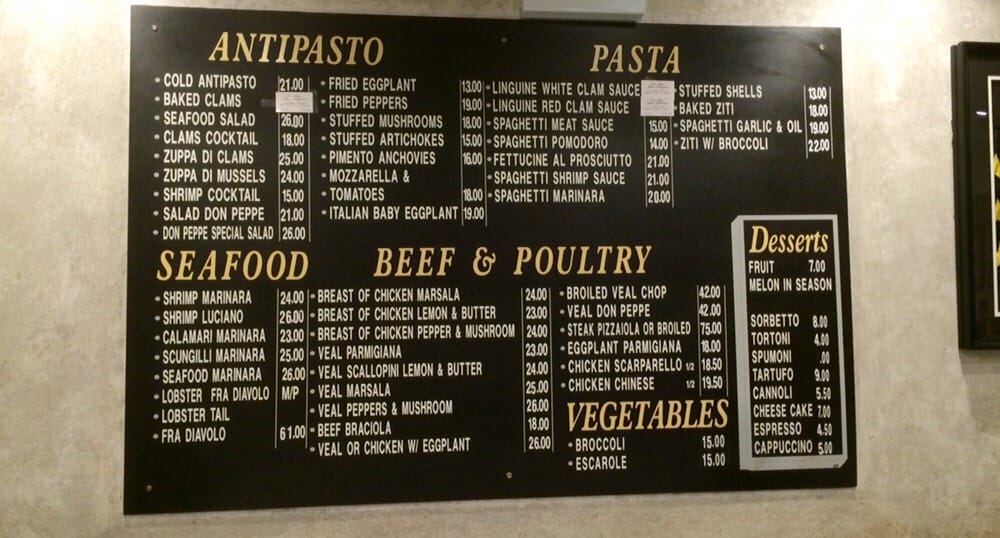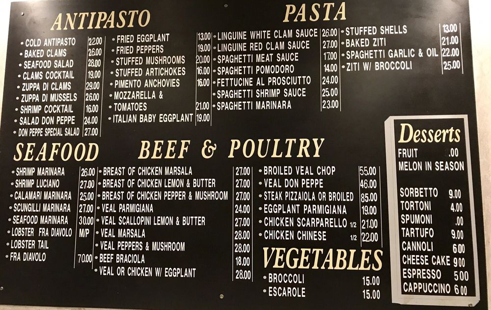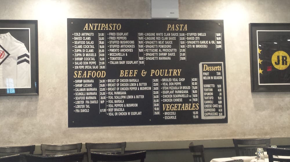 "Introducing the Menu at Don Peppe: A classic Neapolitan restaurant in South Ozone Park, NY, known for its old-school charm and delicious Italian cuisine. The menu offers a variety of appetizers, from Cold Antipasto to Seafood Salad, satisfying pasta dishes like Linguini with Clam Sauce and Rigatoni with Sausage, and tasty vegetable options including Broccoli and Broccoli Rabe. Customers rave about the exceptional service and traditional dishes like Veal Scallopini and Baked Clams. The ambiance is casual yet classy, perfect for a family-style dining experience. Don Peppe is a must-visit for anyone craving authentic Italian flavors in a nostalgic setting."